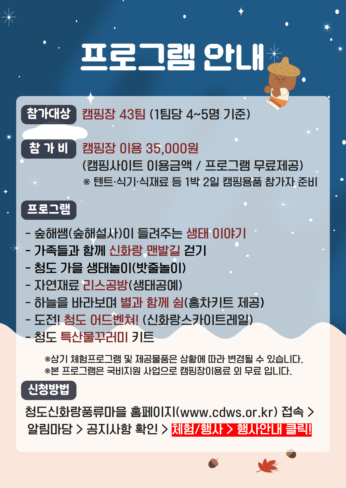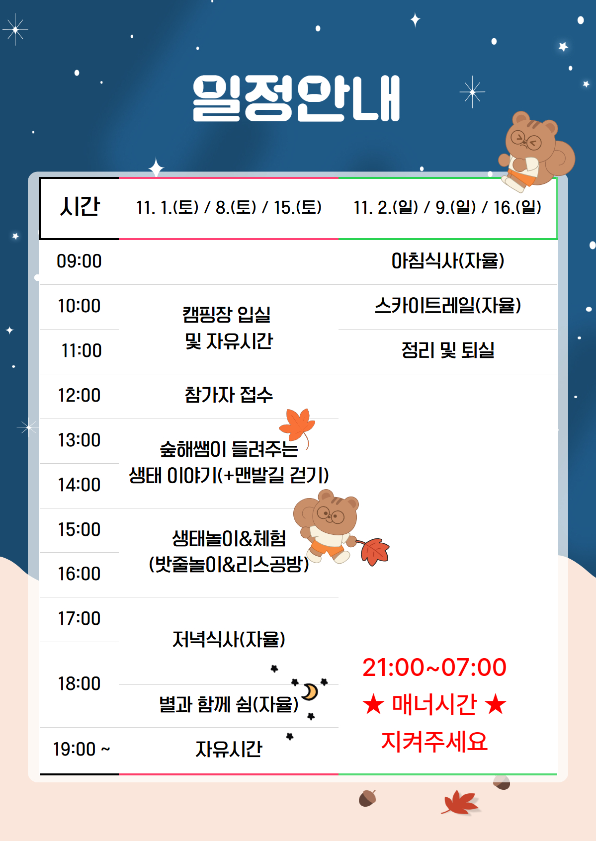 행사제목[마감] (11.8.~9.) 가족숲캠프: 느린하루